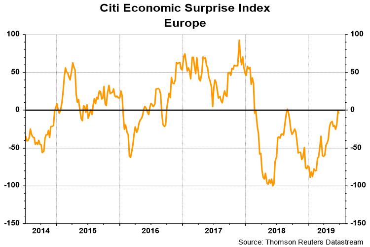 The Citigroup Europe Economic Surprise Index (ESI), which measures whether high frequency economic data is beating or missing expectations, is rising after being deeply negative for all of 2019.
