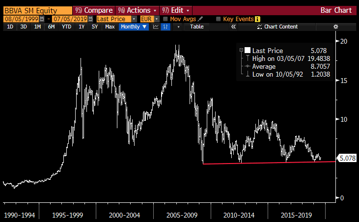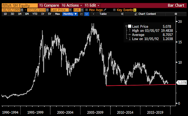 With rates this low, or even negative, European banks are experiencing difficulty achieving profitability in their home markets. Consequently, they go out in the risk curve to chase after yield. Eventually, something has to give. The latest blowup saw Turkey’s President Erdogan fired the head of the central bank, which tanked the Turkish lira. Turkey has enormous amounts of USD denominated debt that it can’t service, which Spanish banks have excess exposure to. Just take a look at BBVA, which is just one example of problematical Spanish bank.