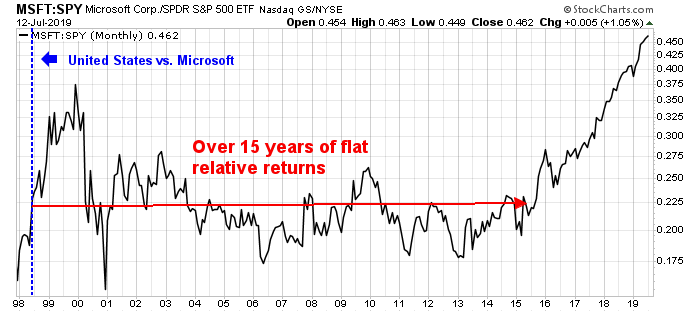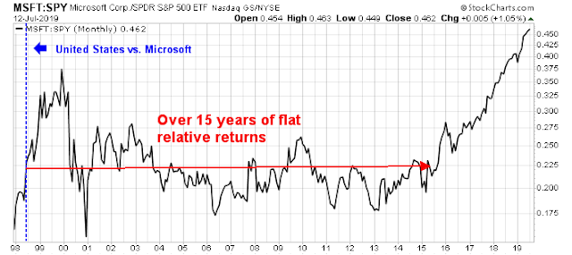 Even under a dire scenario of increased regulatory headwinds, the outlook for Big Data companies is unlikely to be extremely bearish. A useful template might be the antitrust action take against Microsoft in United States v. Microsoft Corp. The stock became a market performer for over 15 years after the DOJ filed its case in court.