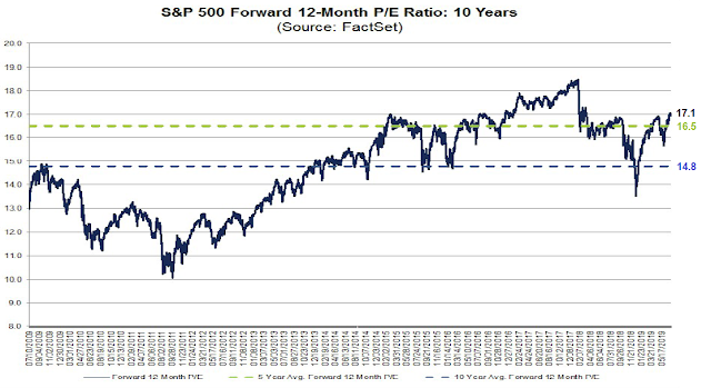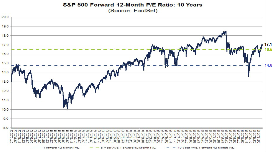 The forward P/E ratio of 17.1 is elevated relative to its own history, which leaves little margin for error should companies either disappoint, or guide downwards during their earnings calls.