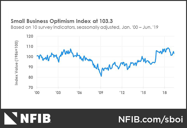 Fed chair Jerome Powell has expressed concerns over falling business confidence from the tariff disputes as one of the reasons for adopting an easier monetary policy. There were 22 references to either “uncertain” or “uncertainty” in the latest FOMC minutes that were published last week. Small business confidence and business conditions from NFIB is especially valuable as an early peek at Q2 economic conditions and as an earnings season preview. Small businesses have little bargaining power, which makes them are good barometers of the economy. The latest NFIB survey shows that optimism has pulled back.