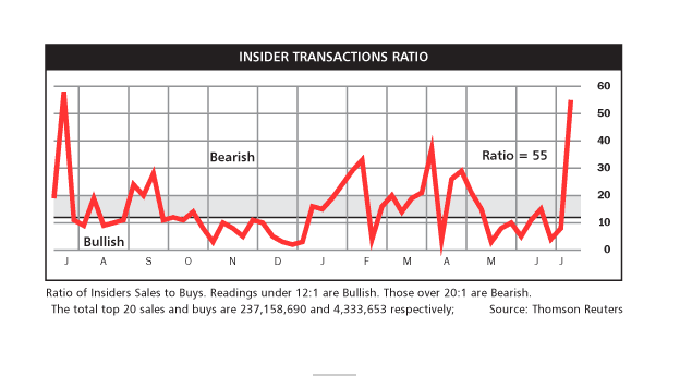 While excessive insider buying is more useful as a buy signal than selling is a sell signal, the latest Baron’s update of insider activity is not supporting the bull case.