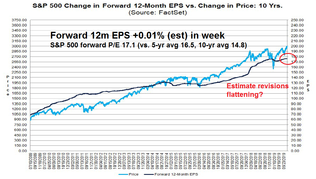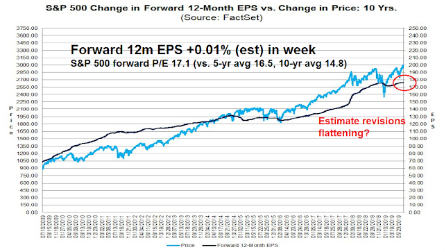 Despite the high level of warnings, forward EPS estimates revisions are still positive, though they may be flattening out.