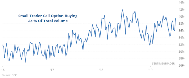 Goepfert also pointed out that small option traders, otherwise known as the retail dumb money, are piling in on the long side, which is contrarian bearish.