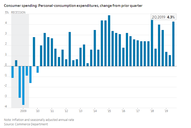 Consumer spending was on fire, personal consumer expenditures rose 4.3% in Q2.
