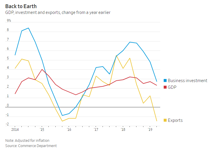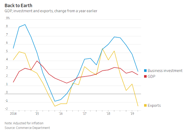 On the other hand, the corporate sector was weak. The trade war hurt exports. Business confidence wobbled, and the uncertainty was reflected by lower business investments.