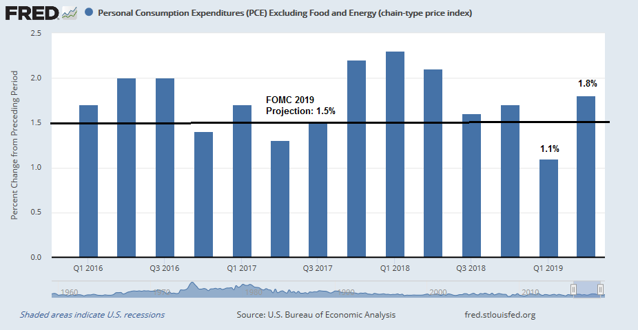 The hawks will focus on the higher growth rates. The doves will focus on the need for insurance in view of global uncertainty. In addition, inflation remains under control. FOMC’s 2019 median core PCE is projected to be 1.5%, which is slightly above the rates observed in Q1 and Q2.