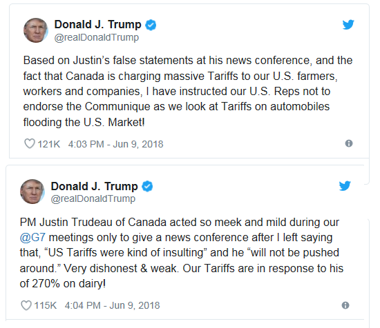 Then there’s the wildcard presented by the G7 summit this weekend. Recall that at the last G7 summit, Trump refused to approve the communique, left the meeting early, got into a trade tiff, and insulted his Canadian host.