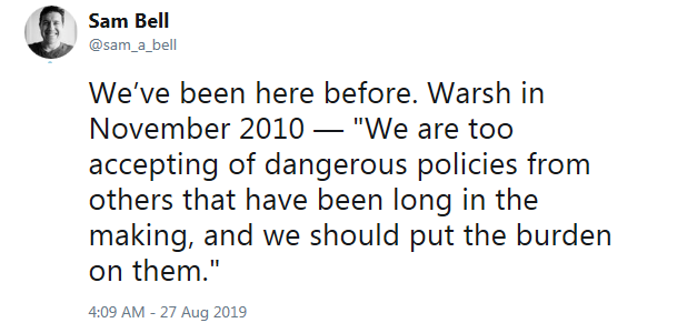 Yet, we’ve been down this road before. Sam Bell highlighted criticism by Kevin Warsh.