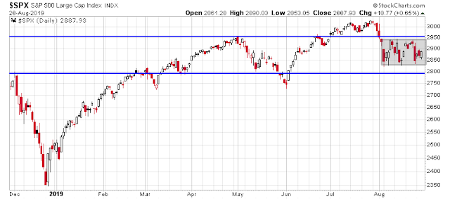Mid-week market update: The stock market is continuing its pattern of sideways choppiness within a range, bounded by 2825 to 2930, with a possible extended range of 2790 to 2950.