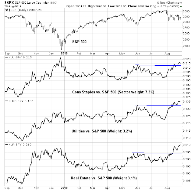 An analysis of sector leadership shows the dominance of defensive sectors, all of which have exhibited recent relative breakouts. This is a signal that the bears remain in control of the tape. The good news is the aggregate weight of the defensive sectors total less than 15% of the index, and no matter how strong they are on a relative basis, they cannot drag the market down very much.