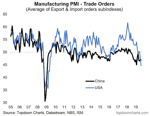 Here is the bull case. The markets look ahead, and the market’s recent action suggests that much of the bad news has already been discounted. Consider the stock markets of China and her major Asian partners. If the outlook is so dire, where are the new lows? To be sure, the Hong Kong market has been beset by political uncertainty, and the South Korean market is especially sensitive to the semiconductor cycle, and the trade spat with Japan. The charts of the other markets, including the Shanghai Composite, have not set 52-week lows.