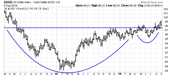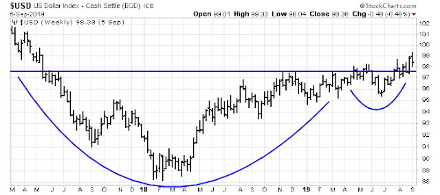 Another view of the market can be found from cross-asset, or inter-market, analysis. The recent strength of the USD has created headwinds for risky assets. As the chart below shows, the USD Index broke up from an inverse head and shoulders pattern and also reached its target. Conversely, the EURUSD exchange rate broke down through a head and shoulders pattern and also reached its target. It was time for a pause, and the pause coincided with the current risk-on episode. The pause may not last very long. Both the USD Index and EURUSD are also tracing out symmetrical bull and bear flags, which are continuation patterns. The trigger may be the September 12 ECB meeting when it may ease further. Such an event would put downward pressure on the euro and upward pressure on the dollar.