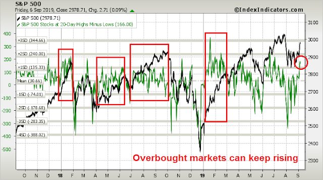 The underpinnings of the market rally can be attributable to excessively bearish sentiment. The advance began last Wednesday on the news that Hong Kong chief Carrie Lam had withdrawn the controversial extradition bill, and the British parliament had passed measures that made a no-deal Brexit more unlikely. Stock prices gained further the next day on the news that US and Chinese trade negotiators would be meeting in early October.