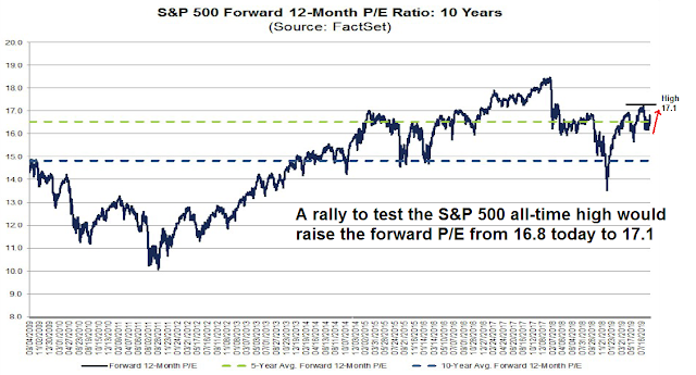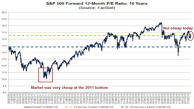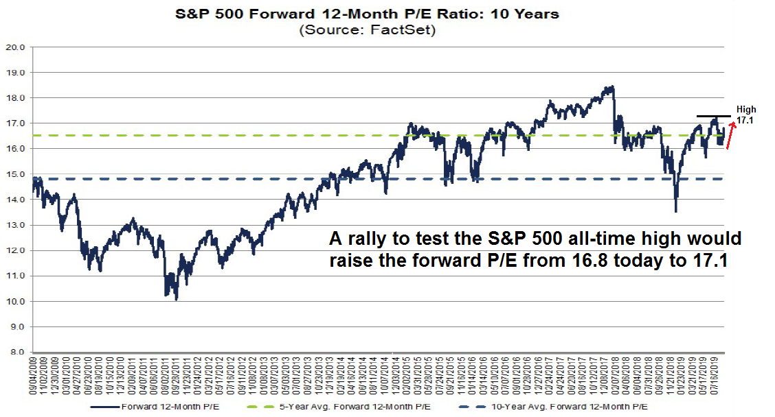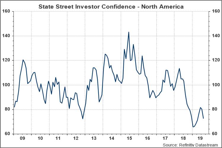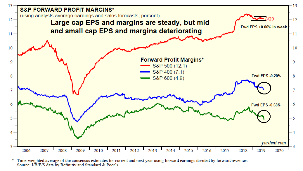 Ultimately, stock prices depend on earnings, and valuation. If earnings momentum is mixed, and valuations are demanding, where’s the upside? The final 2011 upside breakout was sparked by ECB action, which took tail-risk off the table. Today, considerable tail-risk remains. American and Chinese negotiation positions are miles apart, and the risk of a new European front in the trade war is very real; Hong Kong protesters do not appear to be backing down from their demands; and the Brexit drama has not been fully resolved.