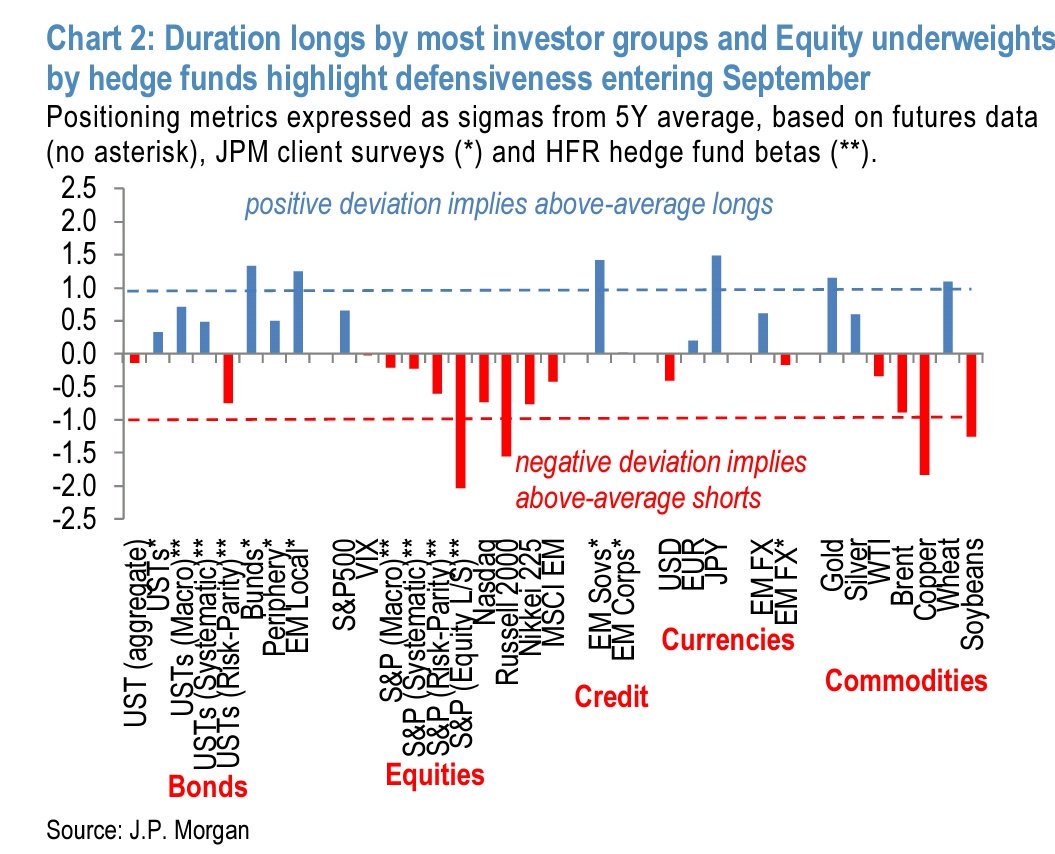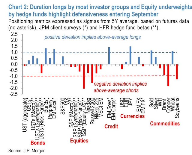 Make not mistake, last week`s risk-on price surge was a short covering rally that was news driven. Callum Thomas highlighted analysis from JPM which indicated hedge fund positioning was mainly long defensive plays, such as bonds, gold, and JPY, and short stocks.