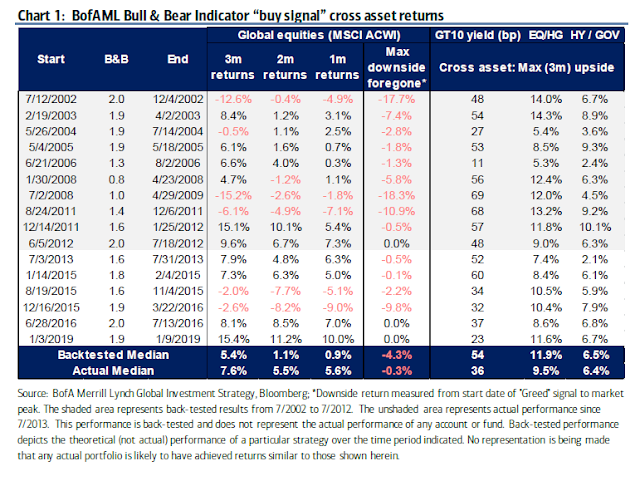 Marketwatch reported that crowded short sentiment readings were the main reason which drove the BAML Bull and Bear Indicator into a buy signal. Returns after the signals are indeed impressive. Stock prices advanced roughly two-third of the time after the signal, and the median MSCI All-Country World Index (ACWI) 3-month return was 7.8%.