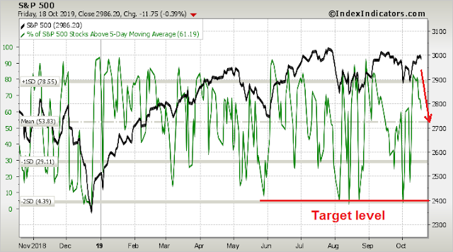 Tactically, the decline appears to be just getting started. Momentum indicators are just recycling from an overbought condition, and they are not oversold yet.
