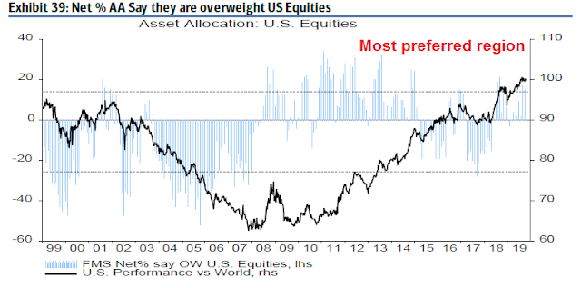 The latest BAML Global Fund Manager Survey gave us some clues to this trade setup. Global managers were at a roughly market weight in equities, their most overweight region was the US.