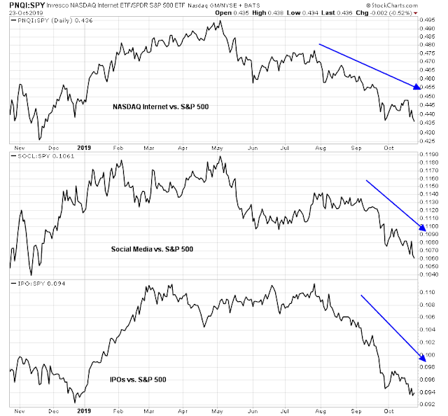 Notwithstanding the all-time high exhibited by AAPL, most of the weakness is attributable to the lagging performance exhibited by the high octane go-go stocks, such as internet, social media, and IPOs.
