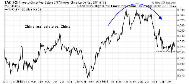 Despite the gloomy outlook for the Chinese economy and Chinese demand for materials, there is a silver lining. The relative performance of China’s property developers appear to have stabilized. These are highly levered companies, and they are very sensitive barometers of China’s financial health because the Chinese population has poured its savings into real estate. The stabilization of their relative performance without any material financial calamities is a signal that the Beijing authorities have been able to manage a soft landing (for now).