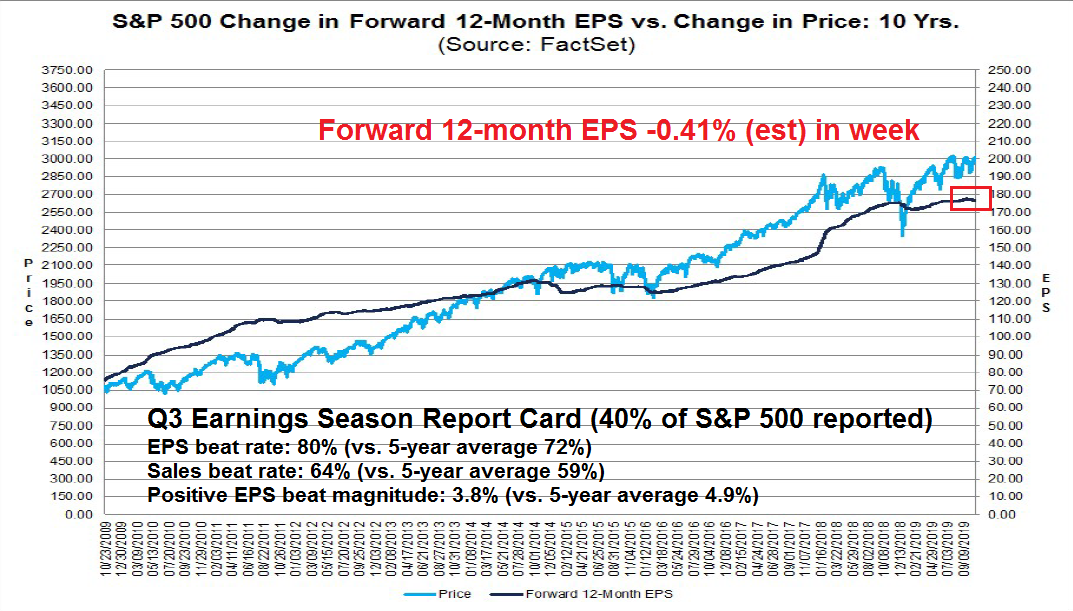 The advance was accomplished on the news of progress in the Sino-American trade talks, but the fundamentals remain challenging. The market trades at a forward P/E ratio of 17.1, which is elevated and equals the levels reached last July.