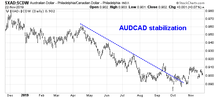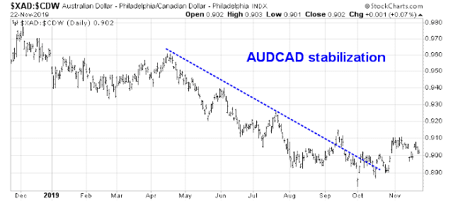In addition, the AUDCAD exchange rate has stopped falling and it is moving sideways. Both Australia and Canada are global commodity exporters, but Australia is more sensitive to Chinese demand, while Canada is more levered to the American economy. The sideways movement in the AUDCAD exchange rate can be interpreted as a sign of stabilization in Chinese growth.