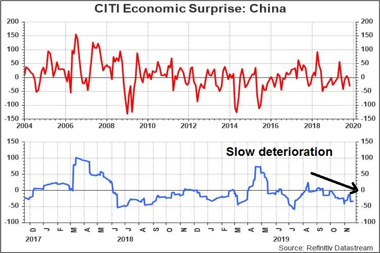 The weakness in China is confirmed by the slow deterioration in ESI.