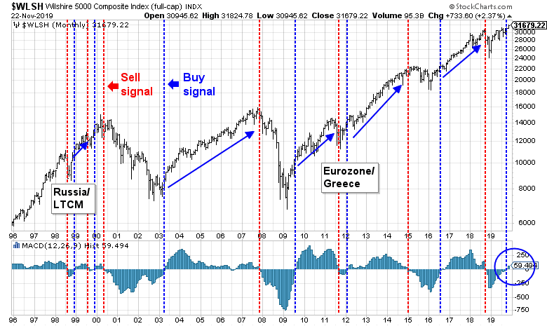The even longer term outlook continues to be bullish. I had highlighted the monthly MACD buy signal flashed by the Wilshire 5000 at the end of October. That buy signal remains in force, and if history is any guide, this should resolve itself in a multi-year bull phase.