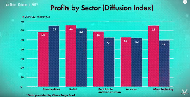 Turning to China and Asia, the picture is more mixed. Leland Miller of China Beige Book revealed in a recent interview with Real Vision that Q3 bottom-up surveys of Chinese businesses showed a high level of weakness. While the diffusion estimates for revenues were up sequentially in two of five sector surveyed: