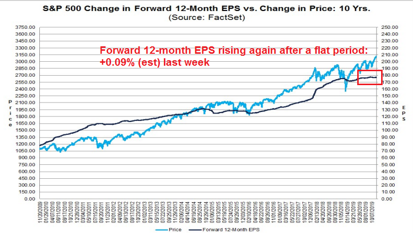 We can see that in the evolution of forward 12-month EPS estimates, which are beginning to rise again after a period of stagnation.