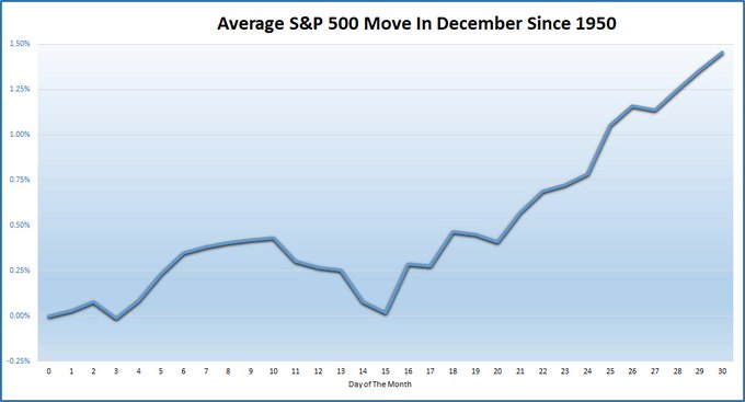 Current market conditions are consistent with a rally later in the month. Ryan Detrick pointed out that the market typically does not begin a Santa Claus rally until mid-December.
