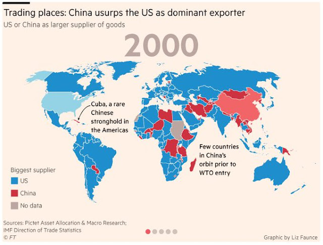 What is the nature of the Chinese threat to America? On the surface, it is the threat of the emergence of a new economic power, as illustrated by the FT (h/t Liz Ann Sonders). As recently as the year 2000, the US was the dominant global exporter.
