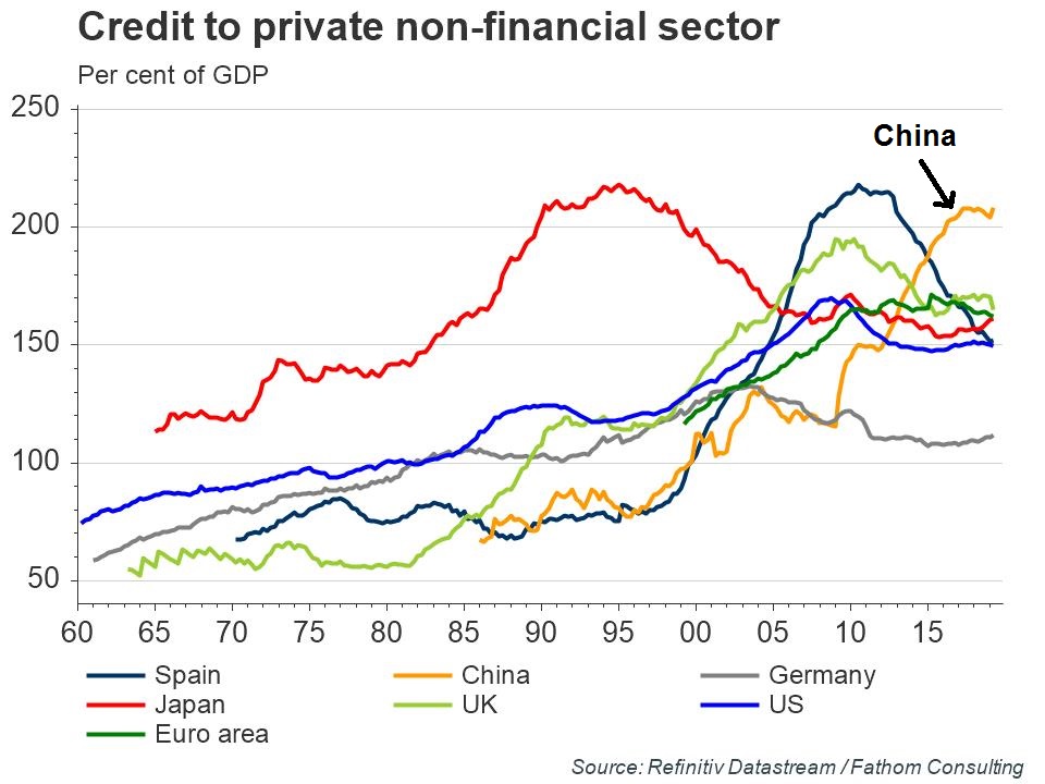 China will also have eventually deal with their mountain of debt. As a reminder, this is the China bears’ favorite chart.