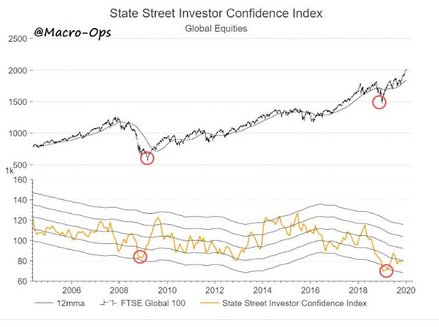 Institutional sentiment has only begun from highly depressed levels. Alex Barrow at Macro Ops observed that State Street Confidence, which is based on aggregate custodial data, bottomed out in December 2018. Confidence has been slowly recovering, and readings are not even back to neutral yet. We are far away from any signs of excessive institutional bullishness.