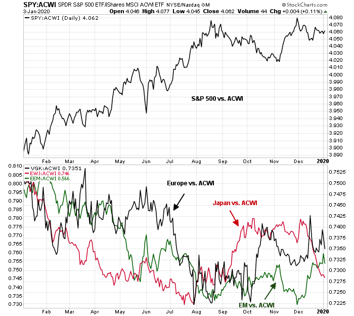 I would argue instead that the bull market is showing signs of a healthy rotation. Leadership is changing from US stocks to non-US markets.