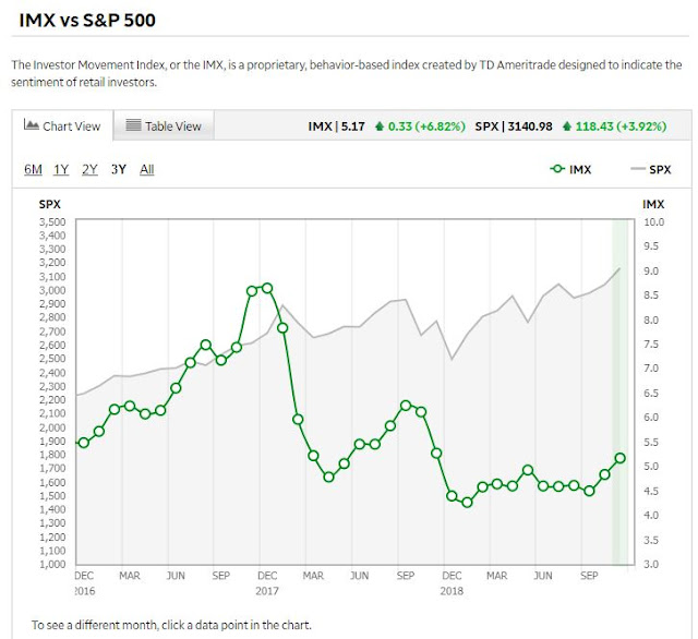 Similarly, the TD-Ameritrade Investors Movement Index (IMX) is also not exhibiting any signs of enthusiasm. Unlike sentiment surveys such as AAII, which asks how respondents feel about the market, fund flows and IMX show what investors are actually doing with their money, which are much better indicators of long-term sentiment.