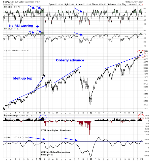 Back in mid-December, I rhetorically asked if the stock market was undergoing a melt-up (see Is the market melting up?). At the time, the jury was out on that question. Today, we have the answer. The market is exhibiting the classic signs of a blow-off.