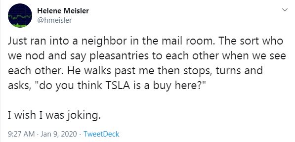 For the ultimate sign of giddiness, here is a tweet by Helene Meisler, market commentator and contributor at Real Money.