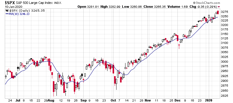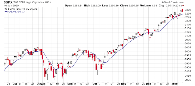 Subscribers received an email alert on Thursday indicating that I had taken profits in all of my long positions and I was in 100% in my trading account. Here are two lines in the sand that I am watching to become more aggressive and go short. The first is an SPX close below its 10 dma.