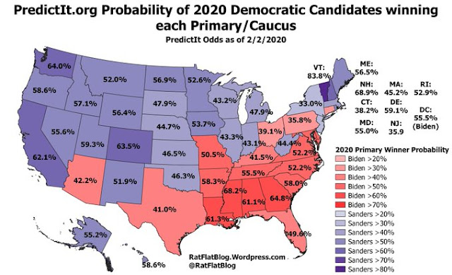 A more detailed bottom-up aggregation of PredictIt odds by Millenarian at the state level shows that Sanders has the edge.