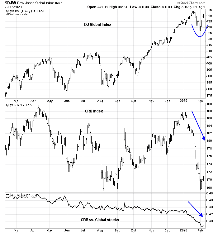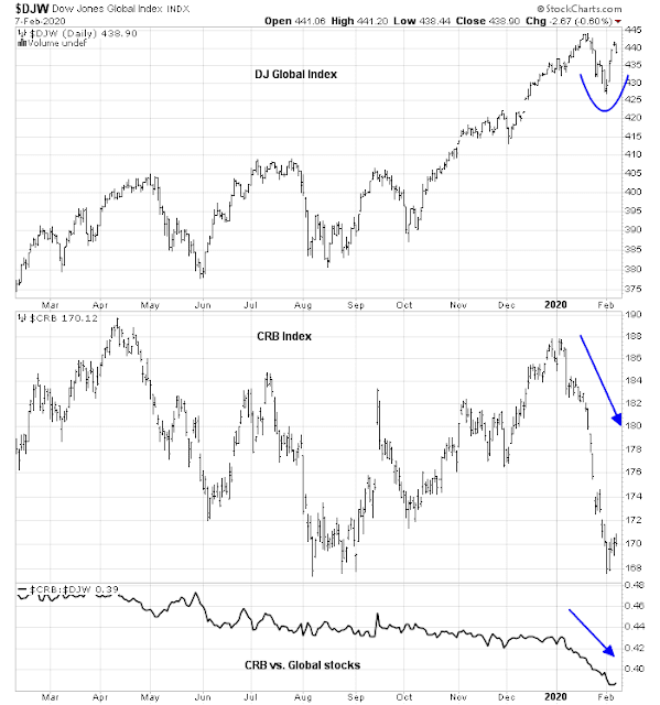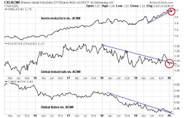 What should investors make of the market’s recent air pocket and subsequent recovery? John Autthers, writing at Bloomberg, proposed an analytical framework where investors view the coronavirus outbreak mainly as a China problem. The MSCI World with China exposure (blue line) has been far more volatile than the MSCI World Index (white line). The companies with high China exposure have tanked in response to the virus scare and dramatically underperformed global stocks.