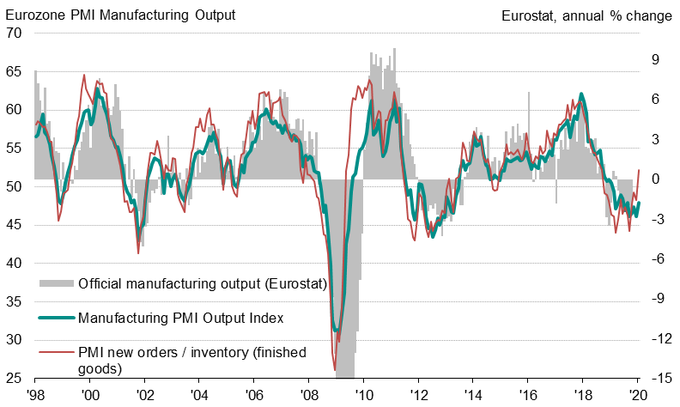 Last week’s release of Eurozone PMI has also been encouraging for the manufacturing sector. In particular, the new orders-to-inventory ratio, a key forward-looking indicator for factory production, rose to a 2.5 year high.