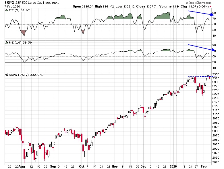 On the other hand, the latest rally could just be a simple bull trap. The latest advance was accomplished with negative RSI divergences.