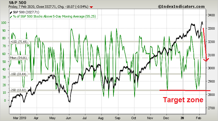 I interpret these conditions as a market that may hit a mild air pocket next week, but not a major decline.