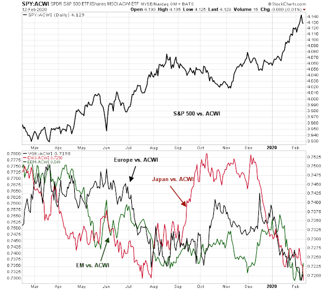 Instead, I would argue that the relentless bid in US equities is reflective of fear – yes, fear. Global investors have been piling into US stocks as a safe haven trade in the face of coronavirus risks. The rally has been misinterpreted by American investors as an unsustainable on fundamental, technical, and sentiment metrics.