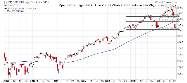 I should thank my lucky starts. i turned bearish last Wednesday (see Why this time is (sort of) different) and tactically shorted the market just as equities topped out, followed by today’s -3% downdraft.