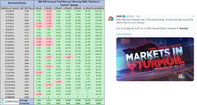 CNBC is also running a “Markets in Turmoil” program, which has historically been a contrarian bullish indicator (h/t Charles Bilello).