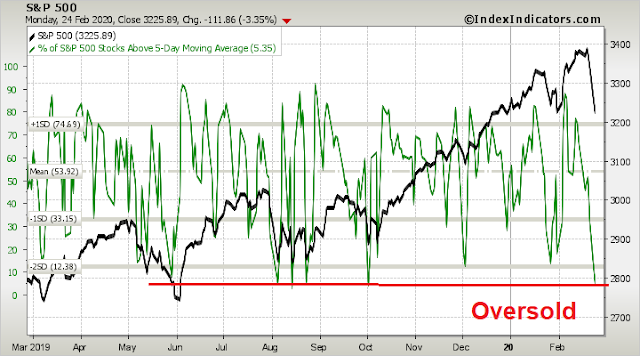 As I write these words, overnight equity futures are strongly positive, and it appears that a bounce is under way. Short-term breadth is oversold, and a brief relief rally is no surprise.
