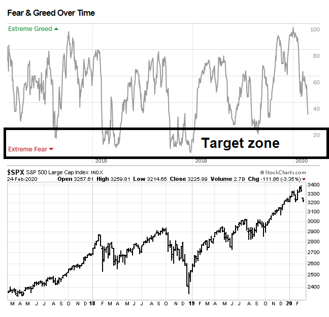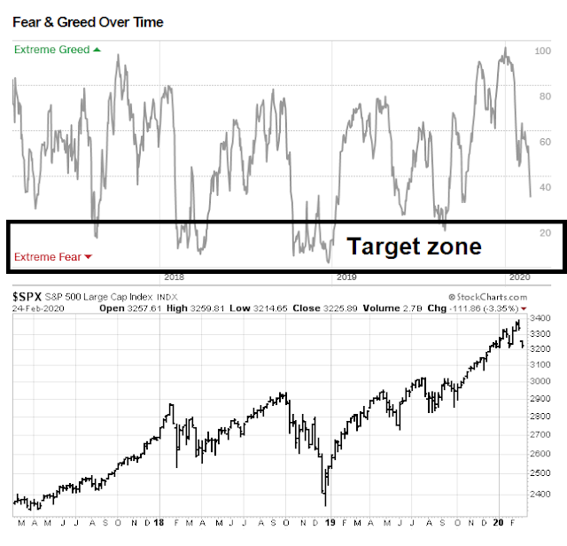 The Fear and Greed Index closed today at 29, which is useful as it shows a retreat in bullishness. Historically, the index has not made a durable bottom until it fell below 20.